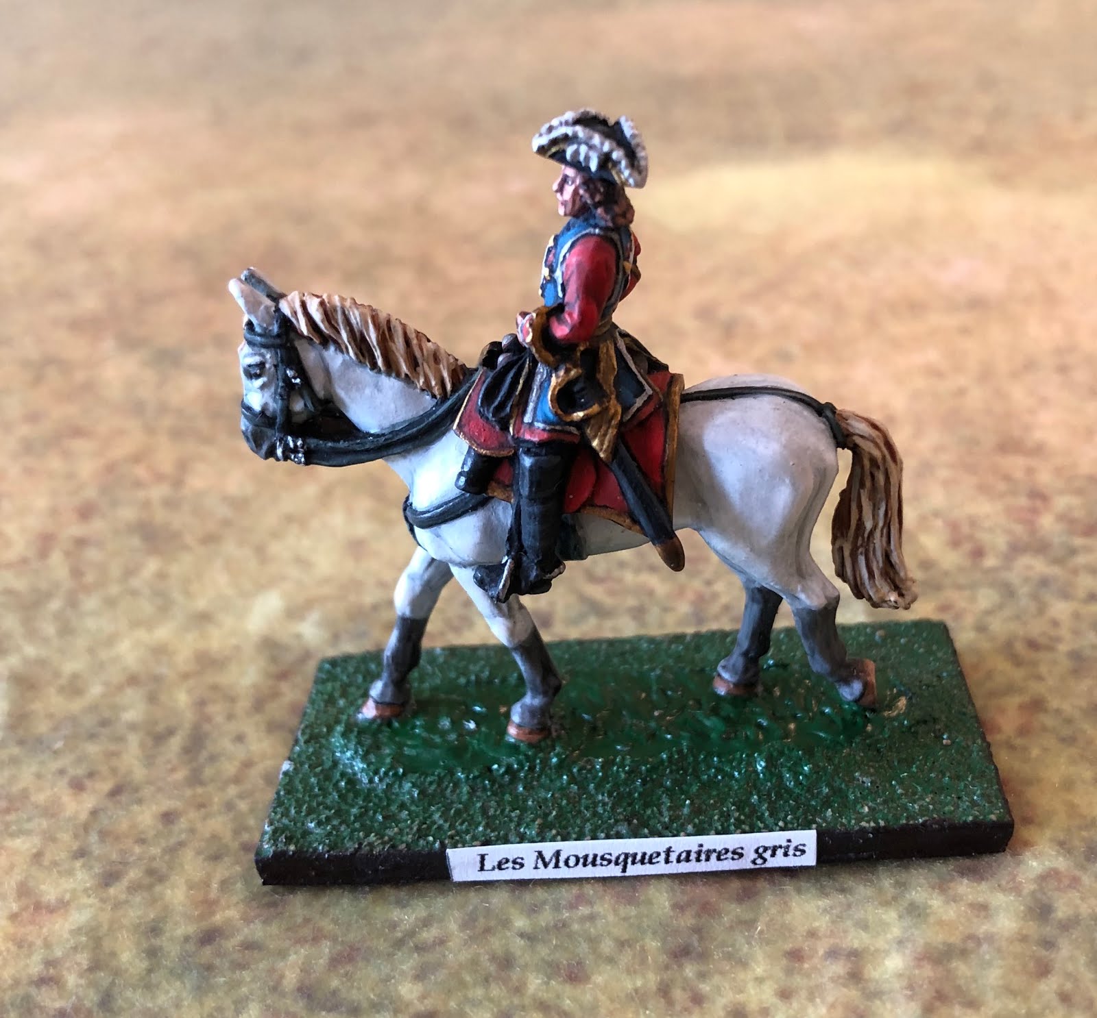 The gris (grey) musketeers and the noir (black) musketeers rode horses of their respective colour. I hope to do the Mousquetaires noir at some point.